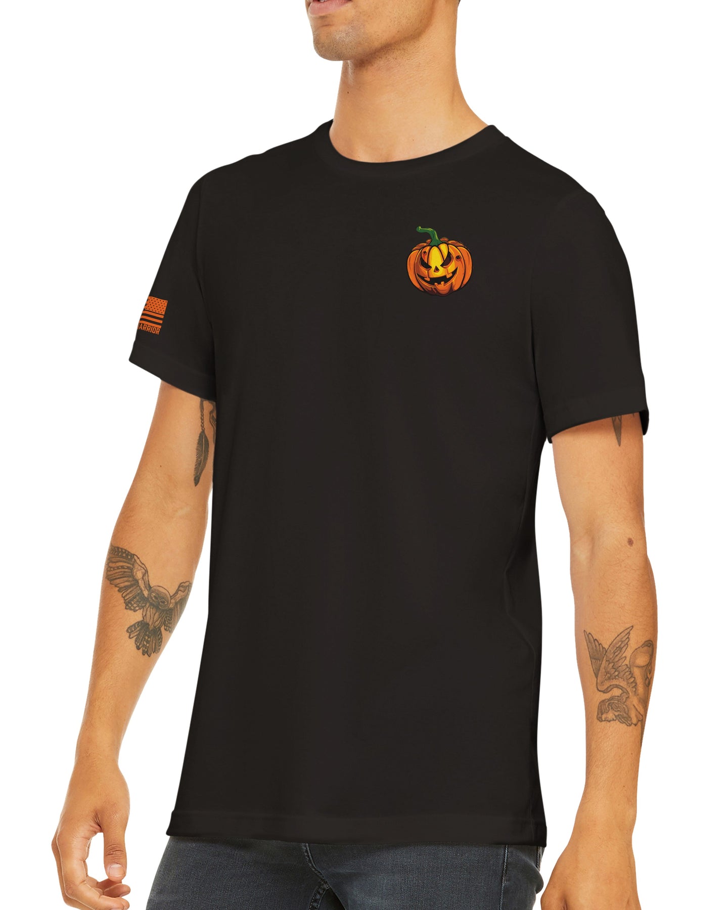 Crafted with Unwavering Quality: At American Warrior, we take quality seriously. Our Halloween T-Shirts are crafted from premium materials to ensure a comfortable fit and long-lasting durability. They're designed to endure the rigors of Halloween festivities while maintaining vibrant colors and sharp graphics.